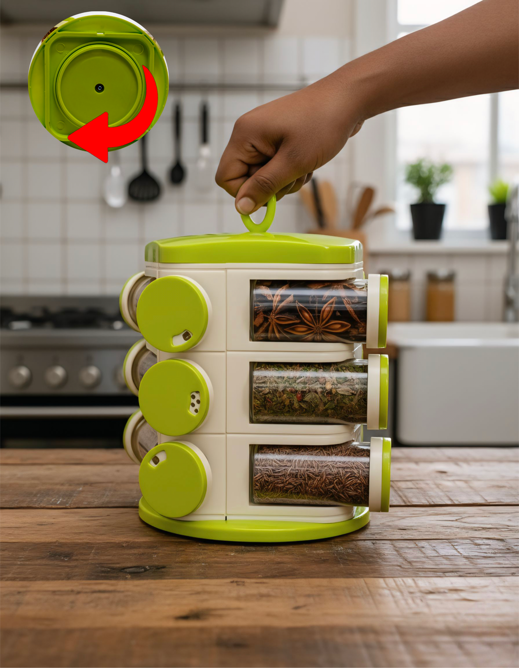 Premium 360° Rotating Masala Rack – 12 Jar Spice Organizer Set (Unbreakable ABS Body)